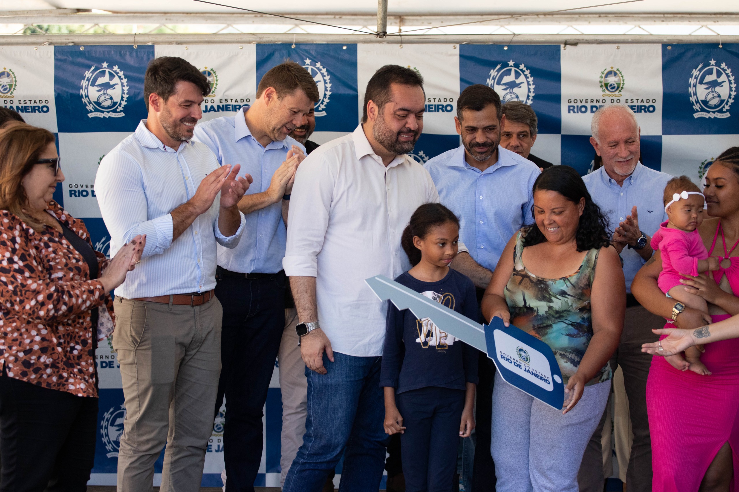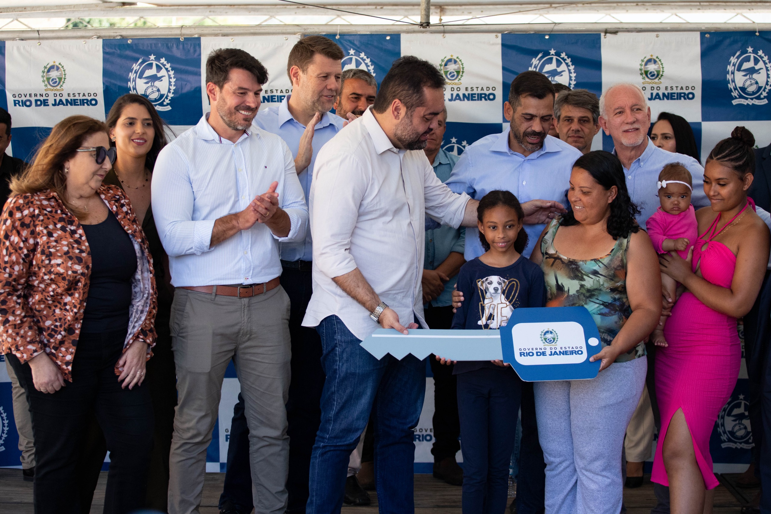 Em seguida, o governador visitou o bairro Alambari, onde verificou os trabalhos realizados pelo Limpa Rio Margens, projeto que amplia a segurança das famílias em períodos de chuva. No mesmo bairro, inaugurou um condomínio com 32 casas, mudando a vida de dezenas de famílias que, há anos, sonhavam com a moradia própria.