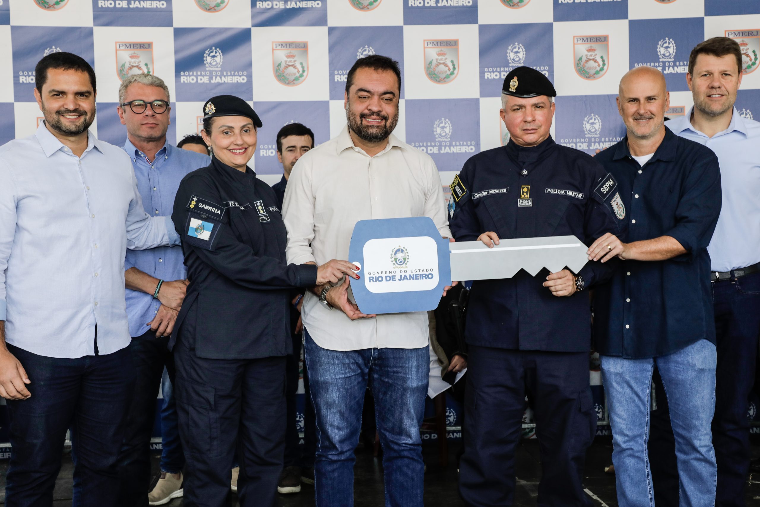 O ato simbólico de entrega da chave das viaturas foi realizado pelo governador, que repassou o item à comandante do 37º BPM, tenente-coronel Sabrina Santos Silva, e ao prefeito de Resende, Tande Vieira, marcando oficialmente a chegada dos veículos à região.