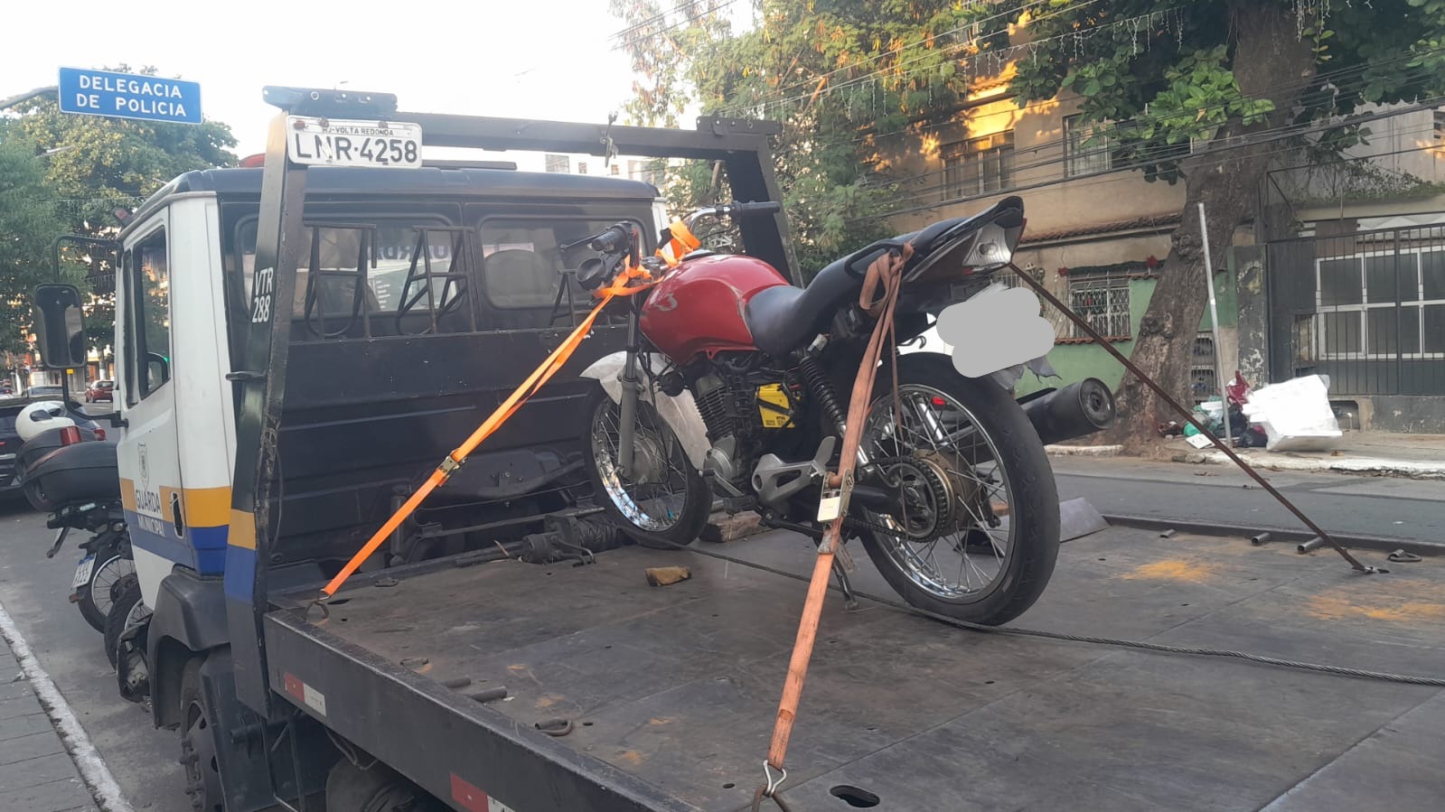 A motocicleta foi removida para o pátio da Guarda Municipal, na Ilha São João, e condutor foi levado para a 93ª Delegacia de Polícia, no Aterrado, para os devidos trâmites legais. No total foram feitas nove autuações, incluindo desobediência, falta de habilitação e proibição de dirigir veículo automotor.