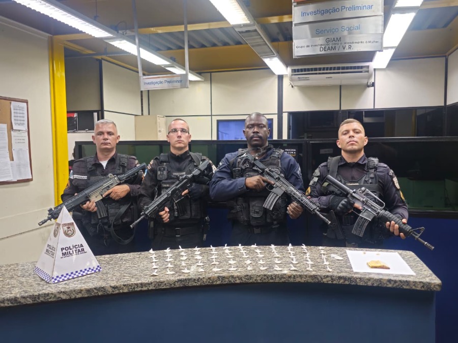 De acordo com a Polícia Militar, a guarnição intensificava o policiamento na região com o objetivo de coibir práticas criminosas quando recebeu informações sobre a atuação de um suspeito que estaria comercializando entorpecentes próximo à pista de skate, uma das áreas de lazer do bairro.