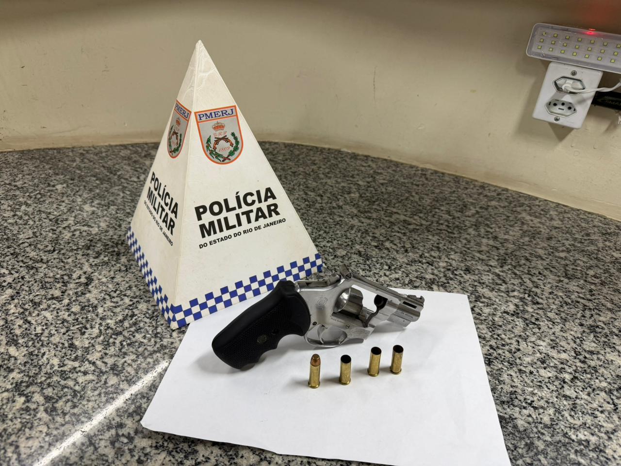 Ainda segundo a PM, a arma estava carregada com uma munição intacta e três cartuchos deflagrados. O material foi apreendido e o homem recebeu voz de prisão no local.