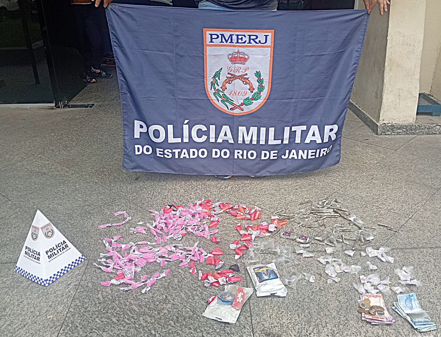 Um homem, de 19 anos foi preso e um adolescente, cuja idade não foi informada, foi aprendido, por policiais do 37º Batalhão de Polícia Militar (BPM) na tarde de segunda-feira, dia 24, durante uma ação contra o tráfico de drogas no bairro Baixada da Olaria, na Região da Grande Alegria. Na ação, os policiais apreenderam carga de drogas contendo cocaína, maconha, pedras de crack, haxixe -derivada da maconha-, além de kits de usuário com deschavador usado para preparar fumo ou ervas, papel de seca e isqueiro e a quantia em dinheiro de R$109.