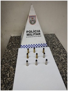 Após buscas nas proximidades, os agentes localizaram o suspeito próximo ao endereço informado. Durante a abordagem, foram encontradas com ele mais três munições do mesmo calibre, totalizando nove munições apreendidas.