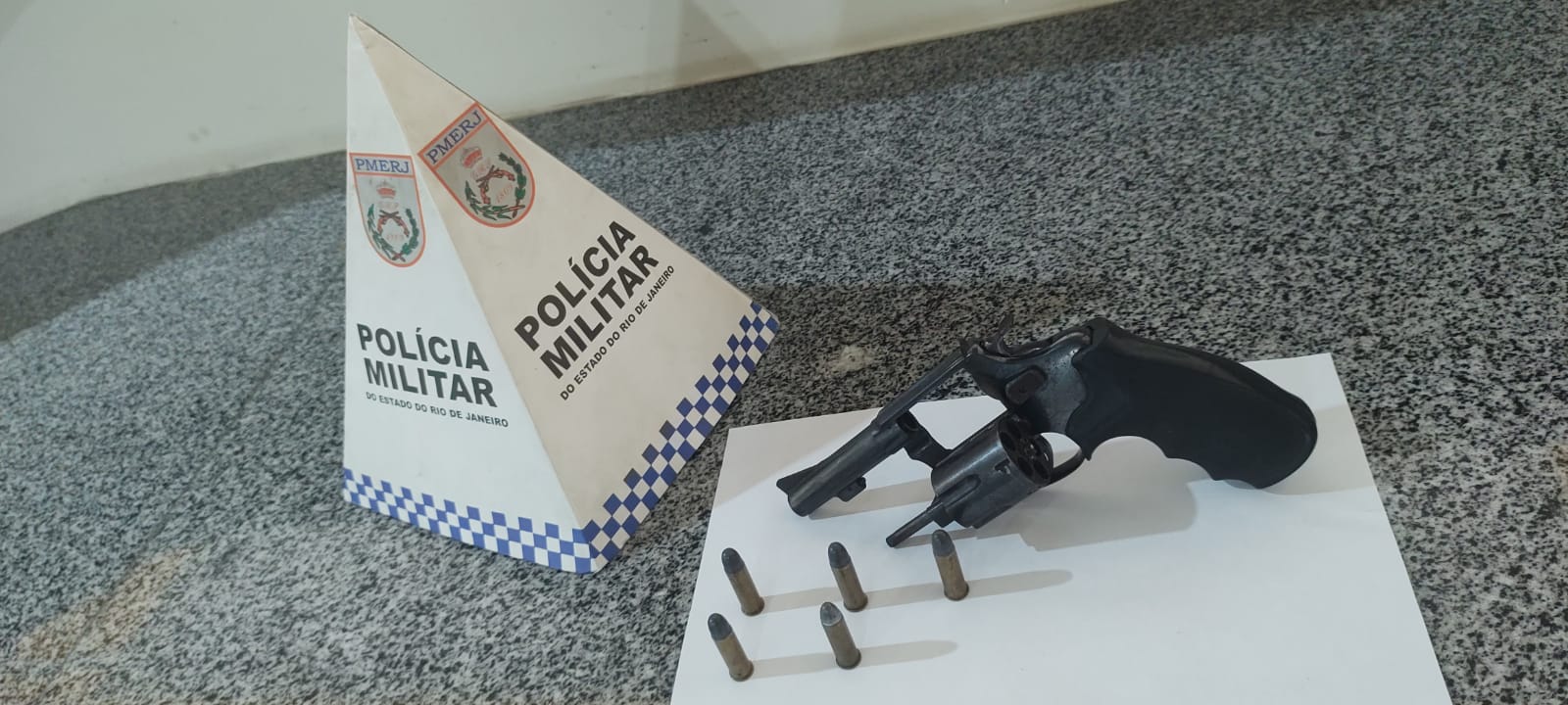 A guarnição foi informada de que um homem de 29 anos teria sido ameaçado e que o suspeito estaria armado. Diante da informação, os policiais se deslocaram até o endereço indicado, onde fizeram contato com as partes envolvidas. O suspeito negou inicialmente possuir arma de fogo, porém, após ser questionado e informado da existência de testemunhas, acabou entregando espontaneamente um revólver calibre 38, sem numeração aparente, contendo cinco munições intactas.