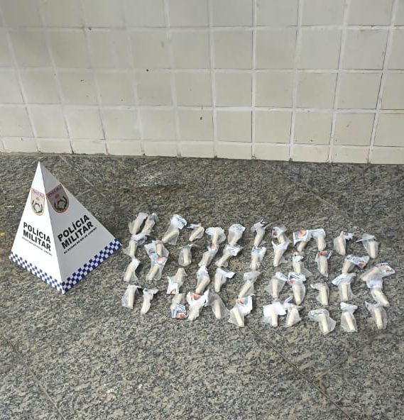 Durante a abordagem, o homem não conseguiu explicar seu comportamento. Após buscas no local, os policiais localizaram uma sacola sobre o telhado da casa contendo 45 pinos de cocaína, totalizando 77,86 gramas da droga. Os pinos estavam etiquetados com a inscrição “cocaína de 20”.