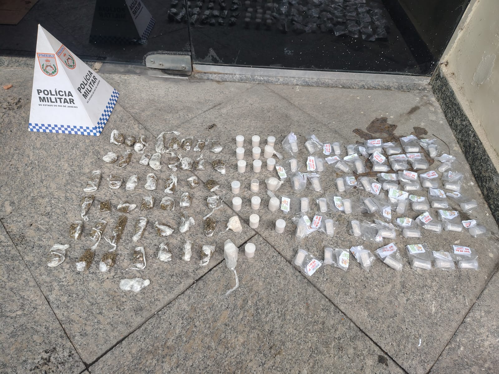 Na mochila e na sacola abandonadas pelo suspeito, os policiais encontraram grande quantidade de entorpecentes: 47 pinos de cocaína avaliados em R$ 20 cada, pesando aproximadamente 178,6 gramas; 20 pinos de cocaína de R$ 50, com cerca de 138 gramas; além de 45 porções de maconha, totalizando 328,5 gramas.