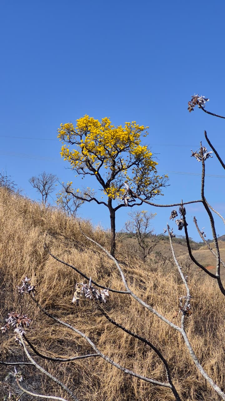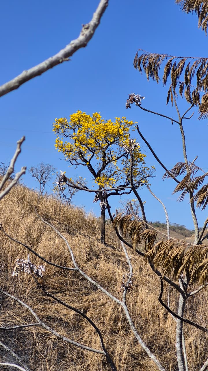 Resiliência: em meio ao incêndio que devastou parte do Parque Estadual da Serra da Concórdia no último fim de semana, um símbolo de esperança resistiu às chamas: um ipê-amarelo (Handroanthus albus). A árvore sobreviveu ao fogo criminoso que atingiu a unidade de conservação e foi registrada em foto pelo professor Ricardo Antônio, durante uma visita educacional ao parque, administrado pelo Instituto Estadual do Ambiente (Inea).