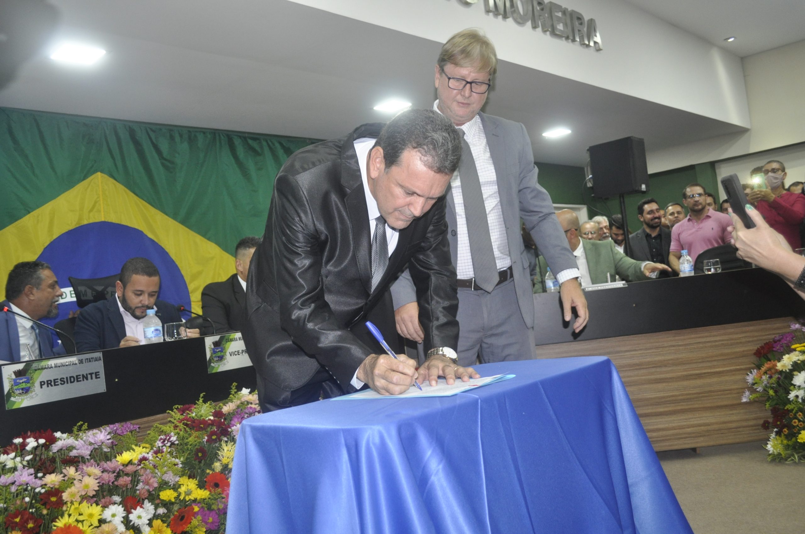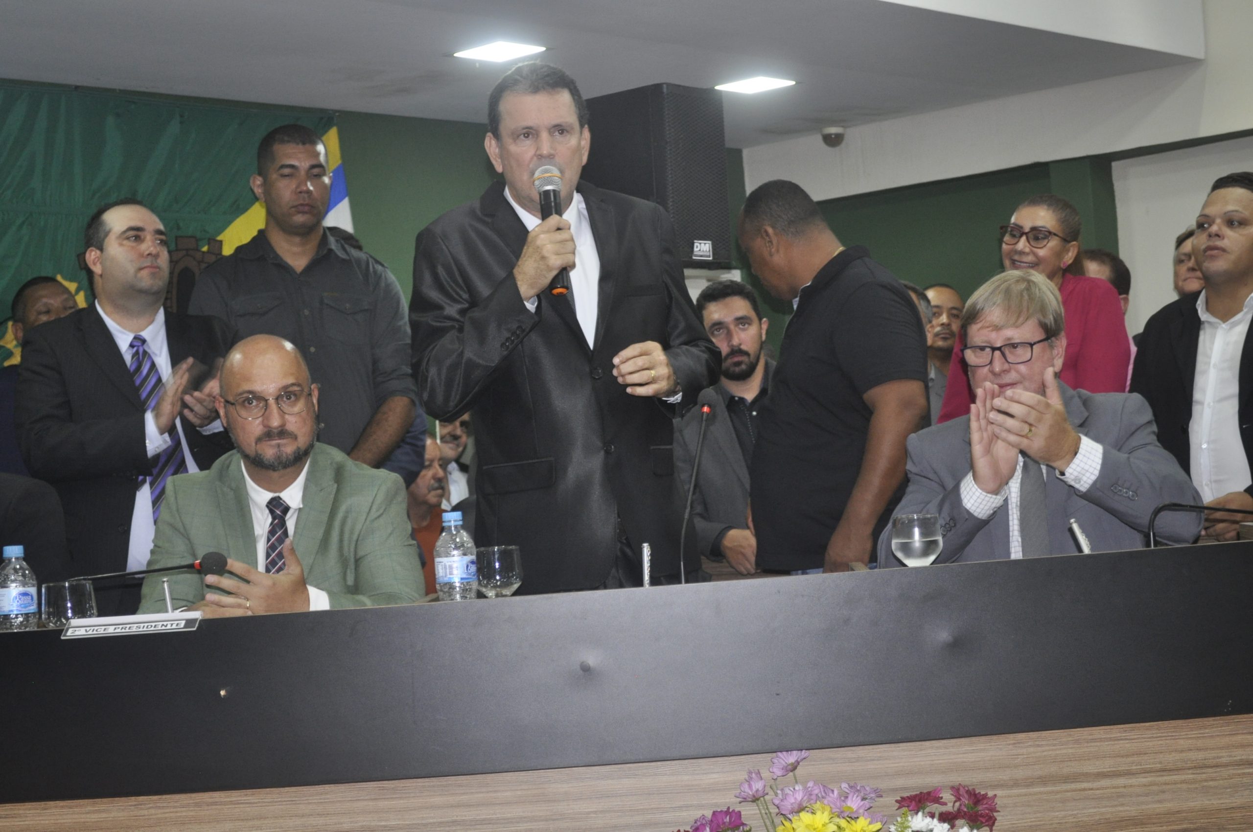 O presidente da Câmara de Vereadores, Silvano Rodrigues da Silva, o Vaninho, conduziu a sessão solene de posse. Após a assinatura da Ata de Posse, os vereadores desejaram boa sorte ao prefeito e o vice-prefeito.