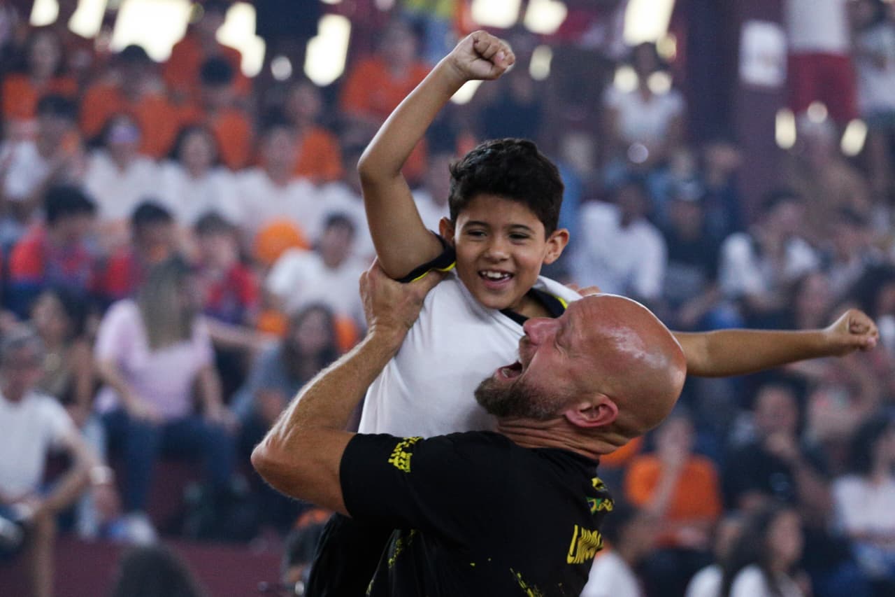 Léo Lindoso fez uma exibição emocionante para o público. Ele ainda convidou outros campeões, como Vitória, Pedrinho e Panxo, para compor duplas nas partidas demonstrativas. Estudantes presentes também puderam jogar com os atletas profissionais, tornando a experiência ainda mais interativa.