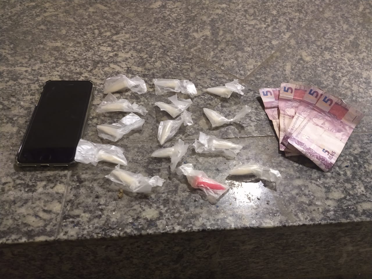 Segundo registro da 93ª Delegacia de Polícia, em patrulhamento pelo bairro, os militares tiveram atenção voltada para a dupla na Rua 21, próximo a um restaurante. Os dois tentaram fugir, mas foram capturados. Com um deles os policiais militares encontraram 14 pinos de cocaína (cerca de sete gramas), R$ 20 em espécie e um aparelho celular.