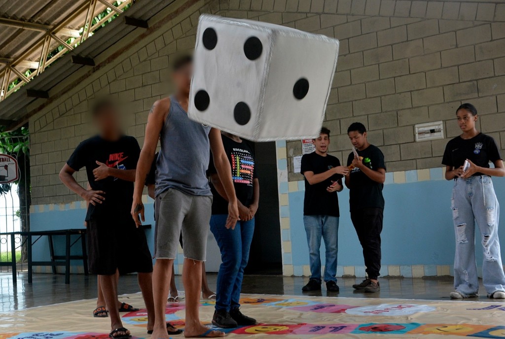 A presidente do CMDCA, Paloma de Lavor Lopes, explicou que o foco da ação foi levar atividades mais lúdicas para esses adolescentes que, segundo ela, contribuem para propiciar apoio à socioeducação. “O jogo, que surgiu através dos conselheiros do CDMDCA, é uma forma lúdica de fazer a tradução do Estatuto da Criança e Adolescente (ECA). Durante a dinâmica eles aprendem as violações de direitos e os direitos efetivos. Os pinos são os próprios jogadores, e as cartas podem ser de retorne ou avance. Elas são utilizadas de acordo com o número obtido no dado que foi arremessado”, esclareceu.