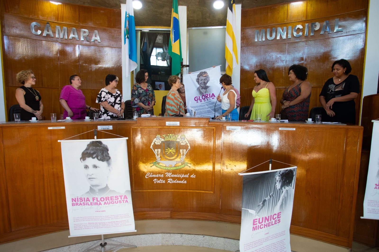 A Secretaria de Políticas para Mulheres e Direitos Humanos (SMDH) de Volta Redonda conseguiu atrair, na última segunda-feira (24), um bom público, principalmente de mulheres em funções de lideranças nas comunidades e de gestoras públicas, para festejar o dia 24 de fevereiro – data que lembra o dia da conquista do voto feminino. A comemoração aconteceu no plenário da Câmara Municipal, no bairro Aterrado.