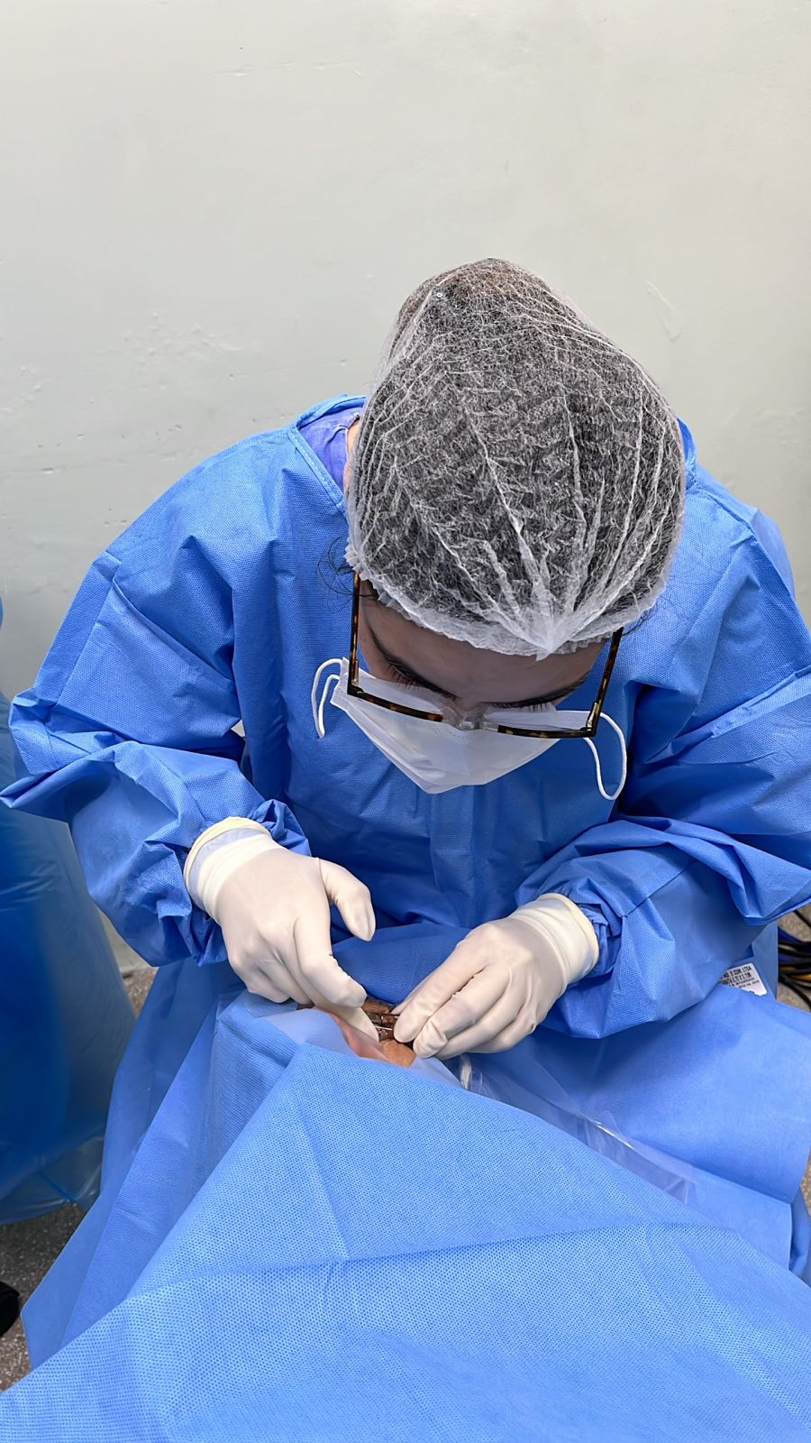 Na área de oftalmologia, a drª. Talissa de Souza realizou 22 injeções intravítreas na sexta-feira, atendendo a pacientes entre 40 e 81 anos, e outras 15 no sábado, para pacientes entre 57 e 87 anos. O procedimento consiste na aplicação direta de medicamentos no vítreo, a substância transparente e gelatinosa que preenche o interior do olho entre o cristalino e a retina. Esse método é utilizado para tratar doenças da retina e outras condições oculares, garantindo que o medicamento tenha efeito direto no local afetado, o que potencializa a ação terapêutica e diminui os efeitos colaterais em outras partes do corpo.