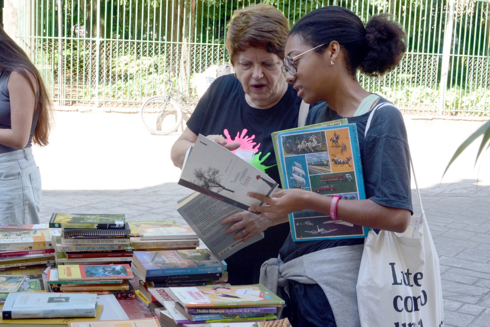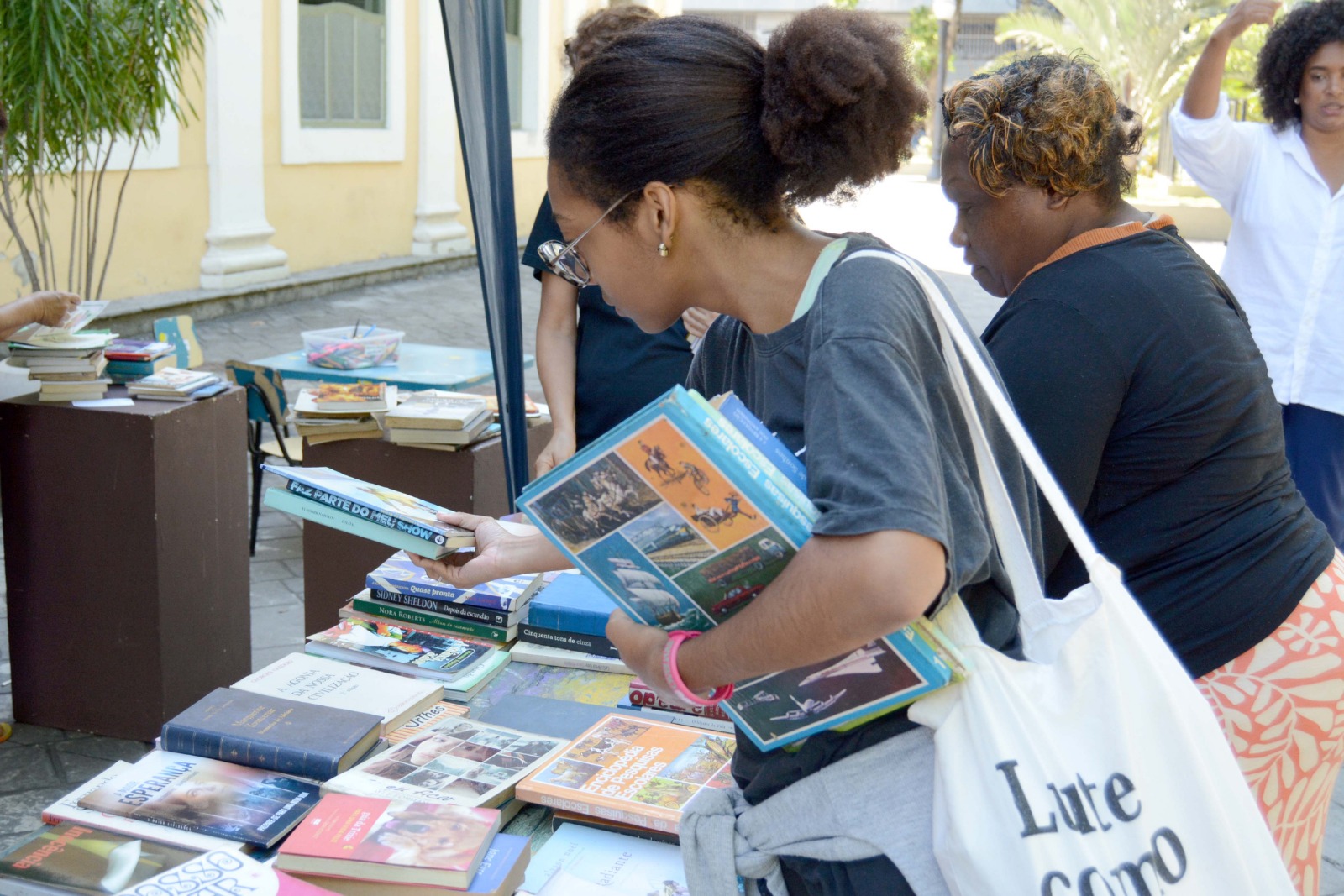 Uma das mais empolgadas da feira, a estudante de Pedagogia, Isabele Diniz, parabenizou a realização do evento. “Estou sempre atenta às ações promovidas aqui. Sempre que posso, venho à biblioteca e participo, principalmente do ‘Pegue e Leve’. Hoje, saí de casa com a intenção de levar alguns livros, mas acabei encontrando verdadeiros tesouros e estou voltando com muito mais do que esperava”, compartilhou Isabele, que também faz questão de doar livros que não utiliza mais.