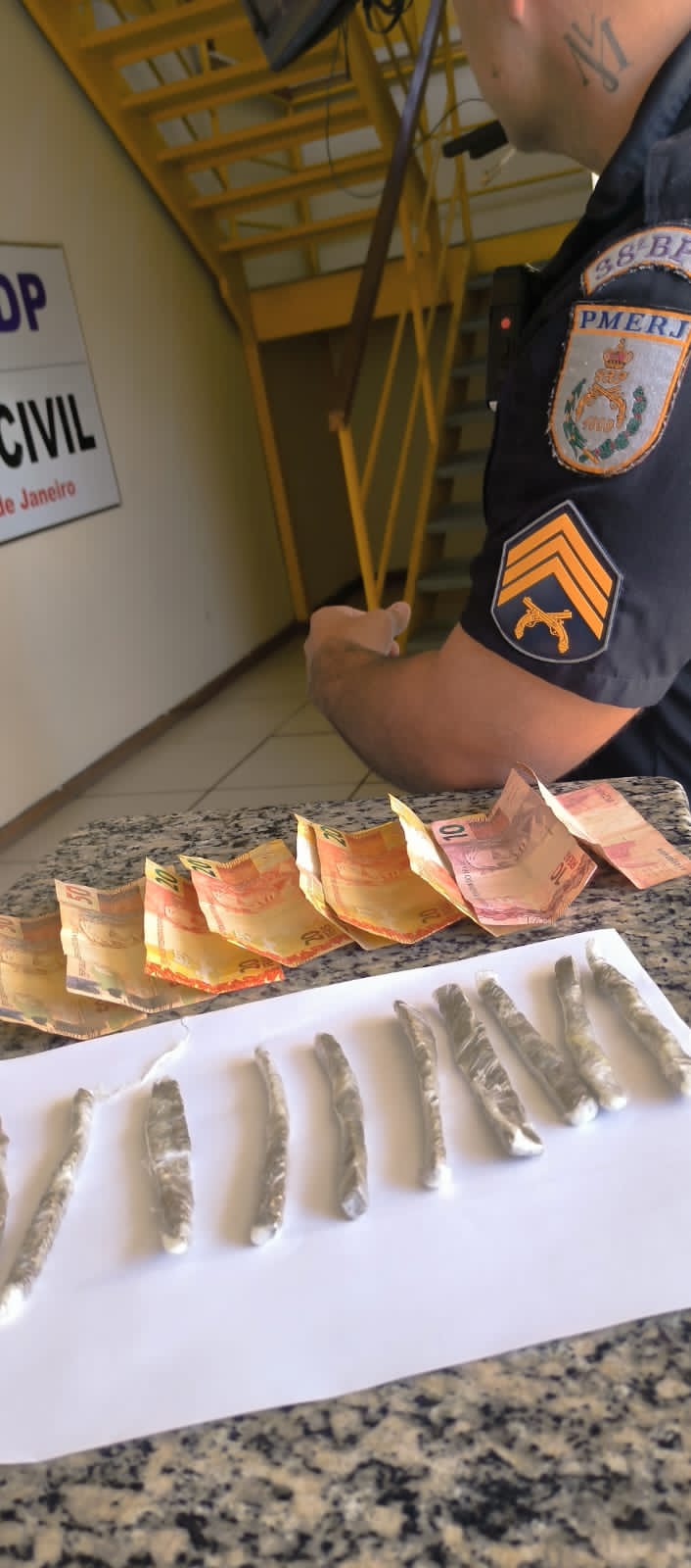 Os policiais localizaram o mesmo, que tentou fugir, mas foi detido. Com ele, foram encontrados R$ 220 em espécie. Ele confessou a venda da droga e indicou onde escondia mais sete tiras de maconha, levando os agentes até o local.