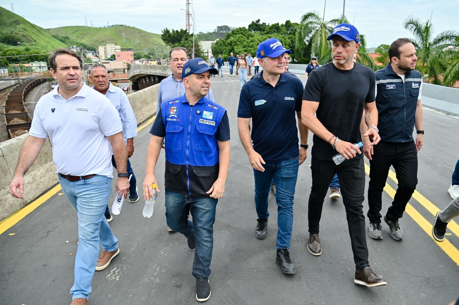 O ministro dos Transportes, Renan Filho, esteve em Barra Mansa na manhã desta sexta-feira, dia 16, com a nova etapa da caravana “Na Boleia do Brasil”. Na oportunidade, além de ter vistoriado o viaduto do Barbará, que integra as intervenções ferroviárias do município, ele anunciou que as obras do pátio de manobras, que já estão quase 90% concluídas, serão inauguradas em março, com a possível presença do presidente Luiz Inácio Lula da Silva. Em uma cerimônia realizada na Fazenda da Posse, junto aos prefeitos Luiz Furlani e Antonio Francisco Neto, o deputado federal Lindbergh Farias, o subsecretário Estadual, Rodrigo Drable, entre outras autoridades, o ministro também assinou a Ordem de Serviço para as obras trecho da Rodovia Lúcio Meira -BR-393, oficializando a Acciona Engenharia e Comércio Ltda como nova responsável pelo trecho que corta o Sul Fluminense.