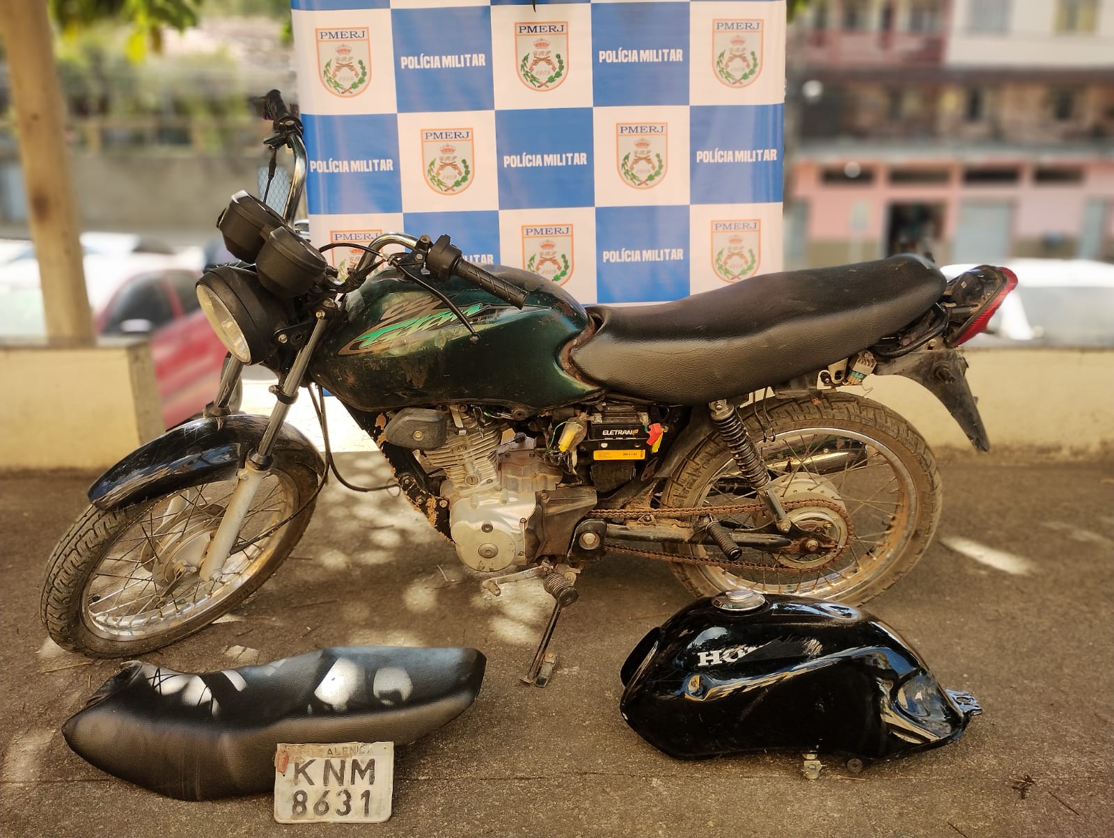 Os policiais chegaram ao local por volta das 12h30min e avistaram uma garupa de motocicleta que chamou a atenção. Após contato com o responsável pelo imóvel, foi feita uma busca no quintal, onde os agentes encontraram a moto parcialmente desmontada, com o tanque trocado e sem as carenagens laterais. A identificação do chassi confirmou se tratar do veículo furtado no dia 4 de agosto, próximo ao Clube dos Coroados.