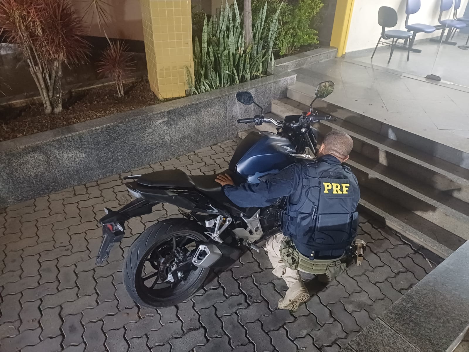 A motocicleta não possuía placa de identificação e apresentava sinais identificadores ilegíveis. Após análise detalhada, os agentes constataram que o veículo era uma Honda CB 300F, com registro de roubo e furto feito na 52ª Delegacia de Polícia, em Nova Iguaçu, no dia 11 de outubro de 2025.