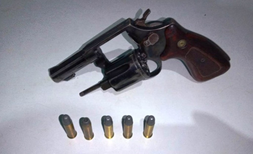 Abordados, somente o rapaz estava em posse de um revólver calibre 38 com cinco munições.