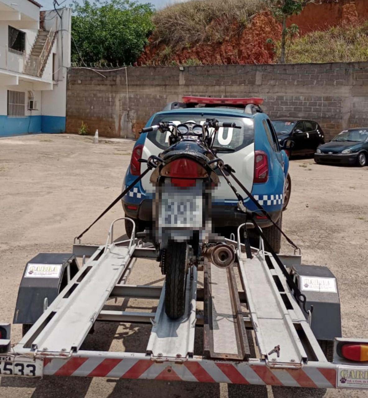 Durante a verificação, os agentes constataram que a motocicleta estava com licenciamento atrasado desde 2016. O veículo foi apreendido e removido ao depósito municipal. O condutor foi levado à 93ª Delegacia de Polícia (DP) por desacato, prestou esclarecimentos e foi liberado.