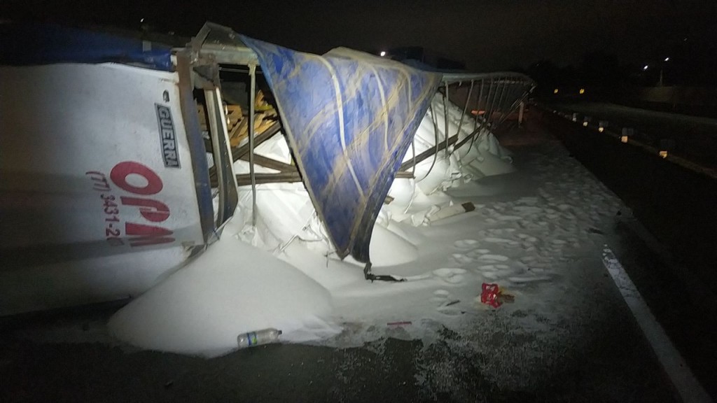 “Carga de Polietileno derramada ainda sendo removida. Fluxo interditado, porém, sendo desviado pela alça de acesso à Itatiaia. A previsão de encerramento da remoção da carga é para 16 horas”, disse em nota a PRF.