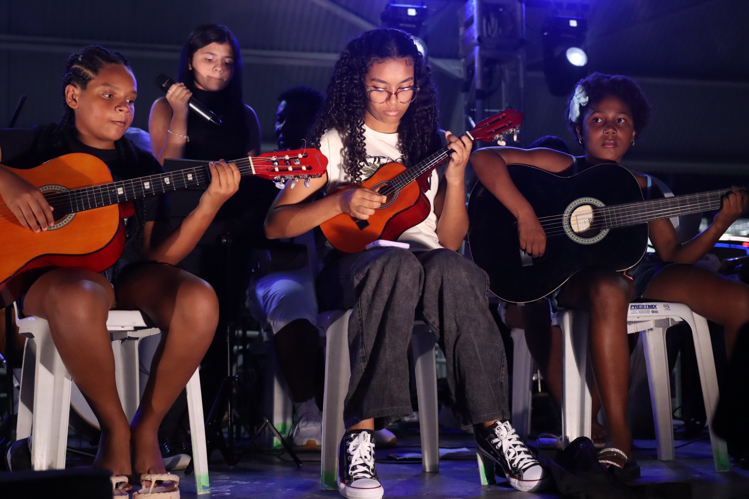 Com mais de 30 anos dedicados à música, o professor Daniel Anastácio Fernandes levou ao palco mais de dez bandas formadas por alunos de diferentes idades, valorizando talentos locais e incentivando a cultura. Os jovens músicos também demonstraram entusiasmo e expectativa antes das apresentações.