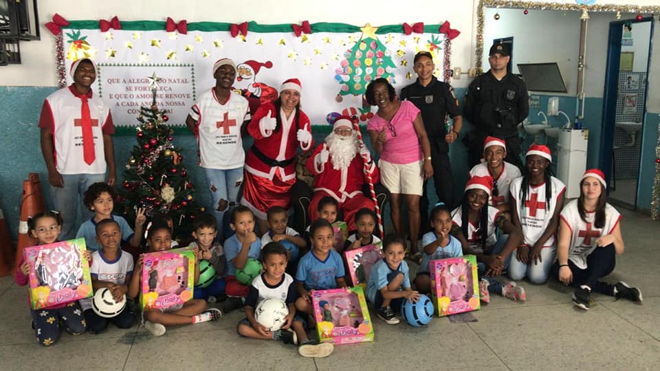 Nas últimas semanas, agentes do 37° Batalhão da Polícia Militar (BPM) participaram junto a Cruz Vermelha, Aciar e Fisga Digital, do projeto Natal para todos, onde foram distribuídos brinquedos para 14 mil crianças dos municípios de Quatis, Itatiaia e Resende. “Contamos também com a presença do ilustre Papai Noel e seus ajudantes da Cruz Vermelha e da Polícia Militar”, informou. A imagem é de divulgação.