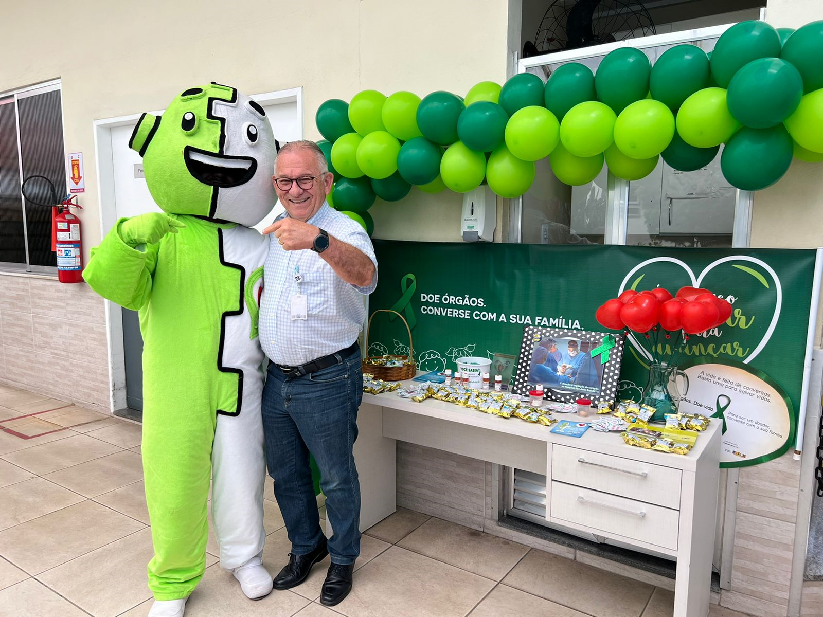 O Hospital São João Batista (HSJB), em Volta Redonda, recebeu na manhã da última quinta-feira, 29, o mascote da Aliança Brasileira pela Doação de Órgãos e Tecidos (Adote), que veio de Santa Catarina para agradecer e parabenizar os funcionários da unidade que colaboram com a causa. O convite partiu da equipe da Comissão Intra-Hospitalar de Doação de Órgãos e Tecidos para Transplantes (CIHDOTT), que organizou o evento também para marcar o encerramento do “Setembro Verde”.