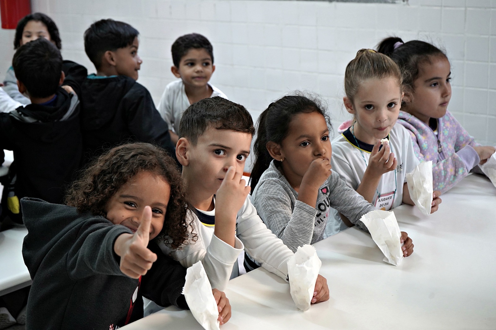 A manhã desta quarta-feira, dia 13, foi especial no Centro Municipal de Educação Infantil (CMEI) Zilda Arns, no bairro Conforto, em Volta Redonda. Uma merenda comemorativa, com cachorro-quente, pipoca, suco e picolé, foi servida aos alunos como parte das ações pelo Dia do Estudante, 11 de agosto, desenvolvidas pela prefeitura, por meio da Secretaria Municipal de Educação (SME).
