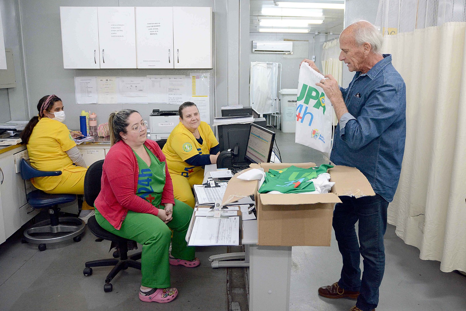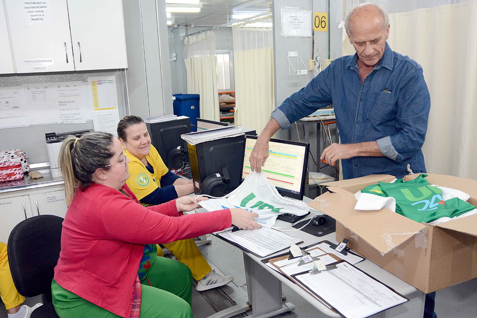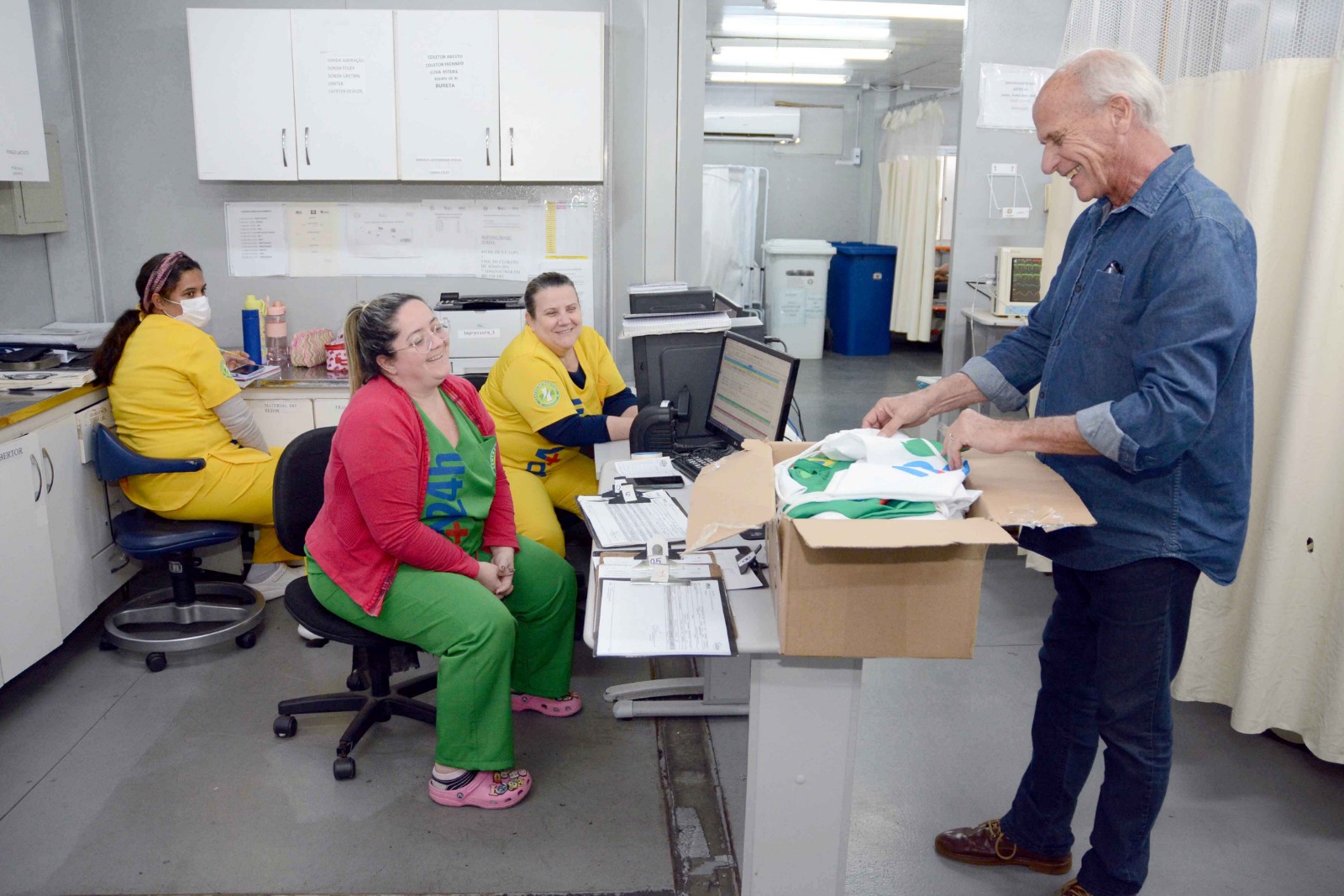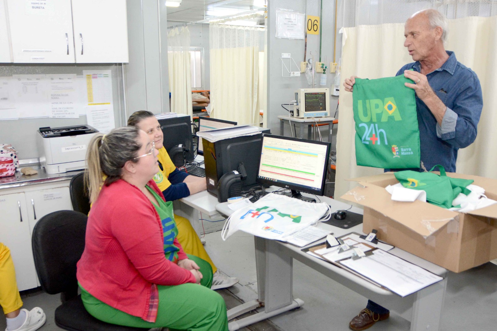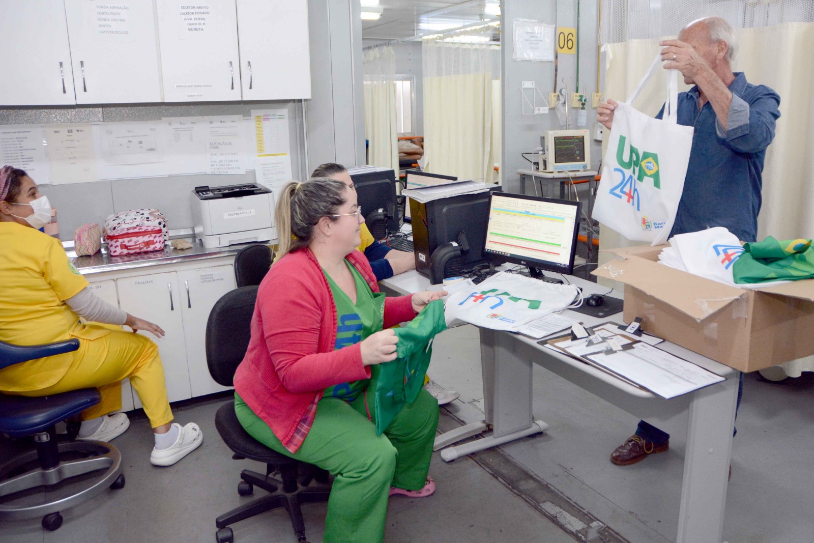 Nesta sexta-feira, dia 15, Mauro Sérgio Penedo Berindelli retornou à UPA Centro de Barra Mansa para agradecer à equipe que o atendeu em maio, presenteando os profissionais com produtos de sua própria confecção.