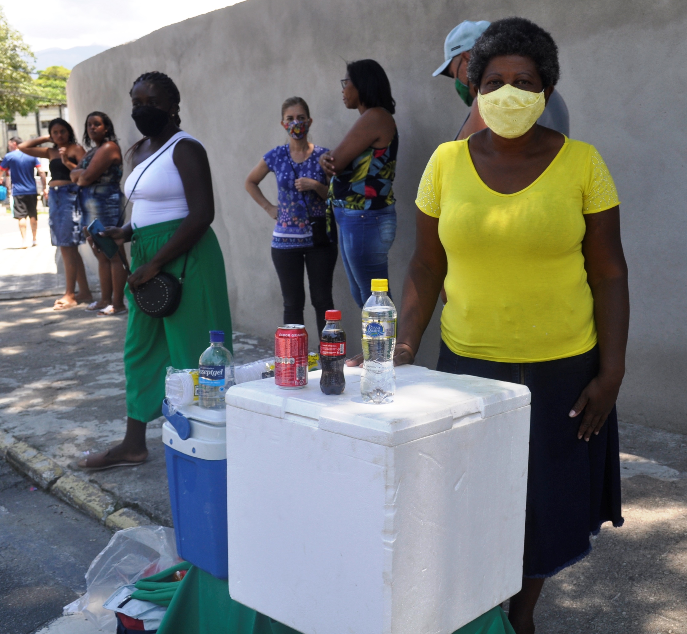 Os ambulantes aproveitaram a movimentação nos locais de votação neste domingo, dia 15, em Itatiaia e em Resende para comercializar seus produtos e ganhar um extra. A enfermeira aposentada Dalva Maia, 54 anos, montou uma banca para vender água e refrigerante. Dalva, que teve Acidente Vascular Cerebral (AVC) que a deixou com sequelas em uma das pernas e a dificuldade de andar, contou que ganhou os produtos dos amigos e está vendendo para consertar a escada de madeira de casa. “Preciso vender tudo para faturar R$200 para consertar a minha escada de madeira que está quebrando e estou com medo porque tenho dificuldade para andar”, explicou Dalva.