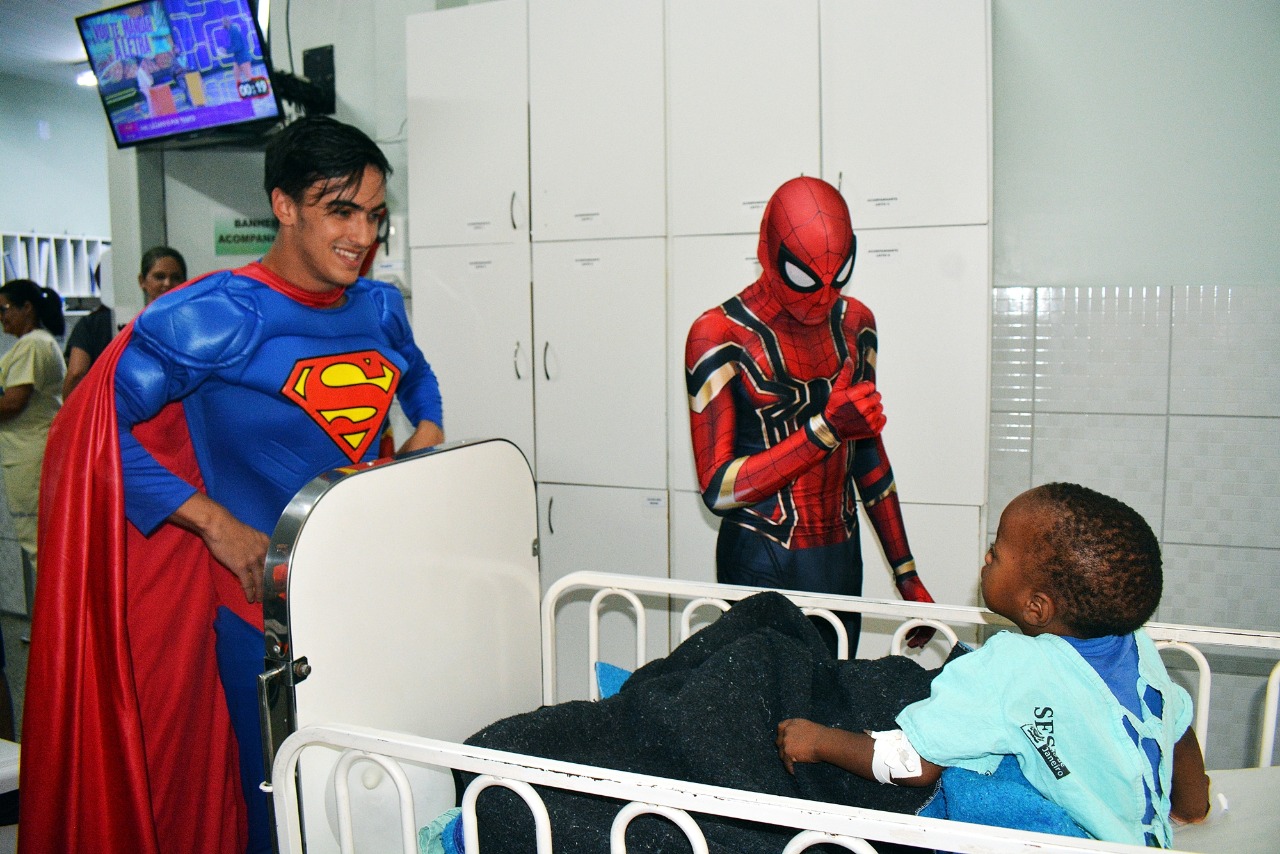 Ontem as crianças internadas no Hospital São João Batista (HSJB) receberam a visita de diversos personagens e heróis. Em comemoração ao Dia das Crianças, direção e equipe do Pronto Socorro Infantil e Pediatria da unidade promoveram atividades lúdicas para os pequenos pacientes. A ação teve apoio do grupo Corações Solidários, que levou os super-heróis Homem Aranha, Super Homem e as princesas Cinderela, Branca de Neve, além da personagem Malévola. Já o grupo Amigos da Bele, além da visita às crianças, promoveu a entrega de carrinhos, bonecas, bolas coloridas e outros brinquedos.