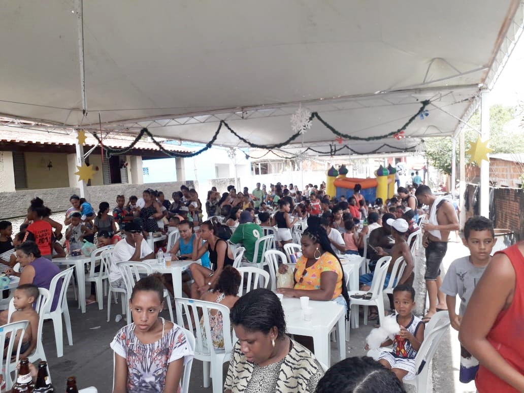 A 1ª Festa de Natal da Família da Caixa D’água, do bairro Siderlândia, em Volta Redonda, realizada no domingo, dia 15, foi um sucesso de alegria e participação de mais de 500 pessoas. A confraternização teve show, brincadeiras e muitas guloseimas para a garotada. A festa foi promovida pela equipe do líder comunitário Maximiliano Peixoto, o tio Max, e teve o envolvimento e apoio de todos os moradores desta região do bairro Siderlândia. Durante toda a tarde não faltou diversão. Havia brinquedos infláveis, pintura de rosto, animada recreação com a ‘Tia Miojo’ e show com o grupo de pagode Amigos do Samba. Também foram servidos cachorro quente, pipoca, algodão-doce, refrigerantes, picolé, açaí e bolo. No final, todas as crianças ganharam uma bola colorida.