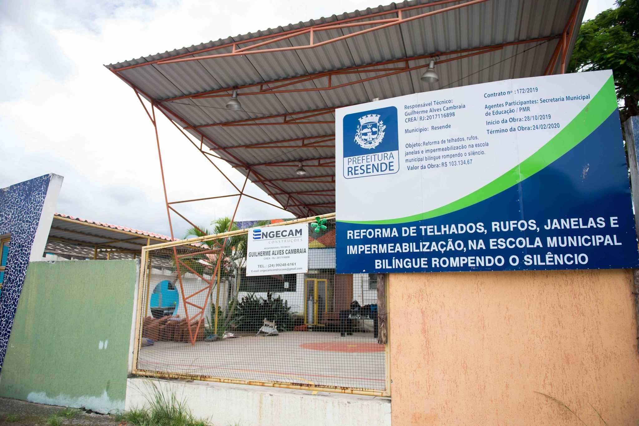 A Escola Municipal Bilíngue Rompendo o Silêncio está em fase final de obras, com o objetivo de oferecer melhores condições para atendimento aos alunos, bem como uma estrutura adequada para o trabalho dos profissionais. De acordo com o prefeito Diogo Balieiro Diniz, a intervenção era muito aguardada e estava prevista no cronograma do ‘Revitaliza Resende’, que passa gradativamente por várias unidades do município. A previsão é de que as obras na unidade sejam concluídas ainda no primeiro semestre de 2020.