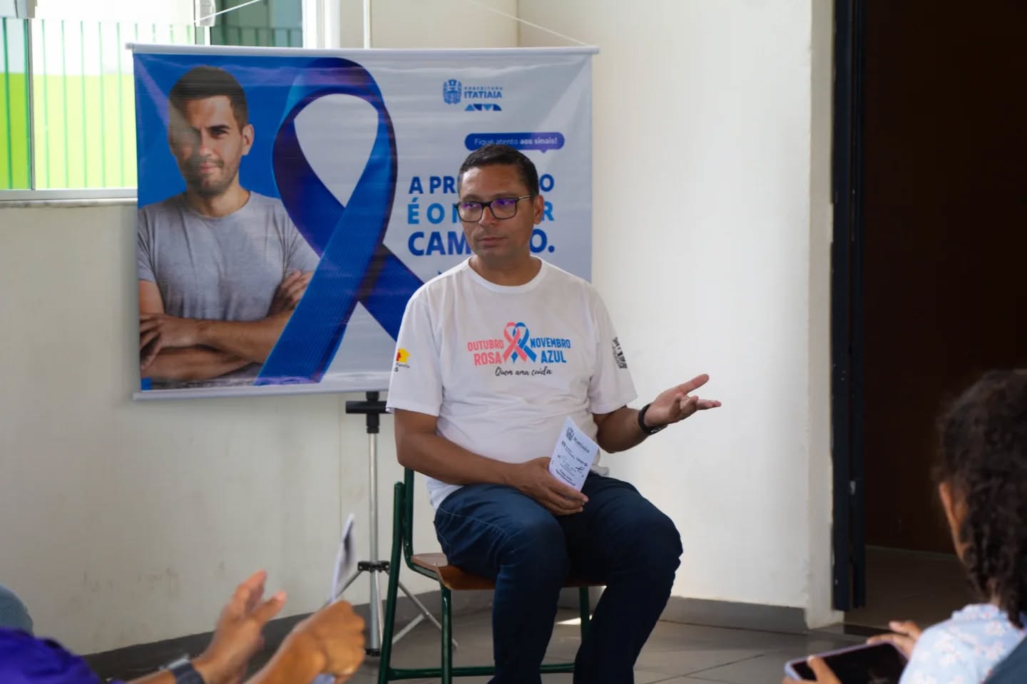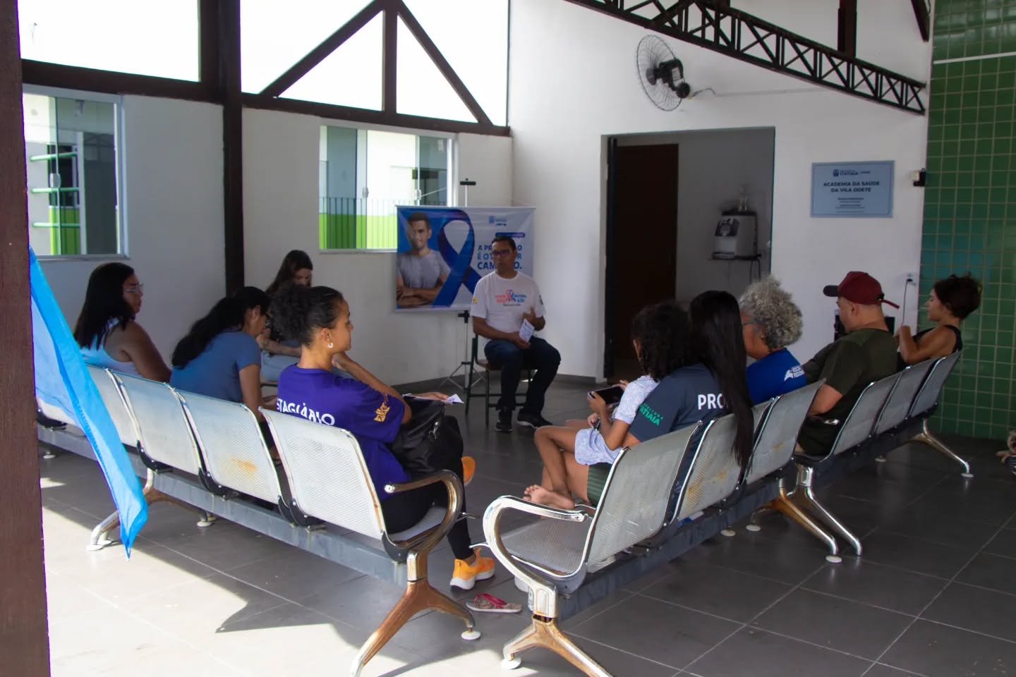 Moradores da Vila Odete, em Itatiaia, participaram nesta segunda-feira (17) de uma ação do Novembro Azul, promovida pela Secretaria Municipal de Saúde. Equipes do eMulti e do PSF reforçaram a importância da prevenção e do diagnóstico precoce do câncer de próstata, alertando que exames e cuidados devem fazer parte da rotina, especialmente para homens acima de 45 anos ou com fatores de risco. A atividade contou com roda de conversa sobre sintomas, prevenção e saúde masculina, além de aferição de pressão e medição de glicose para atualização dos cuidados básicos.