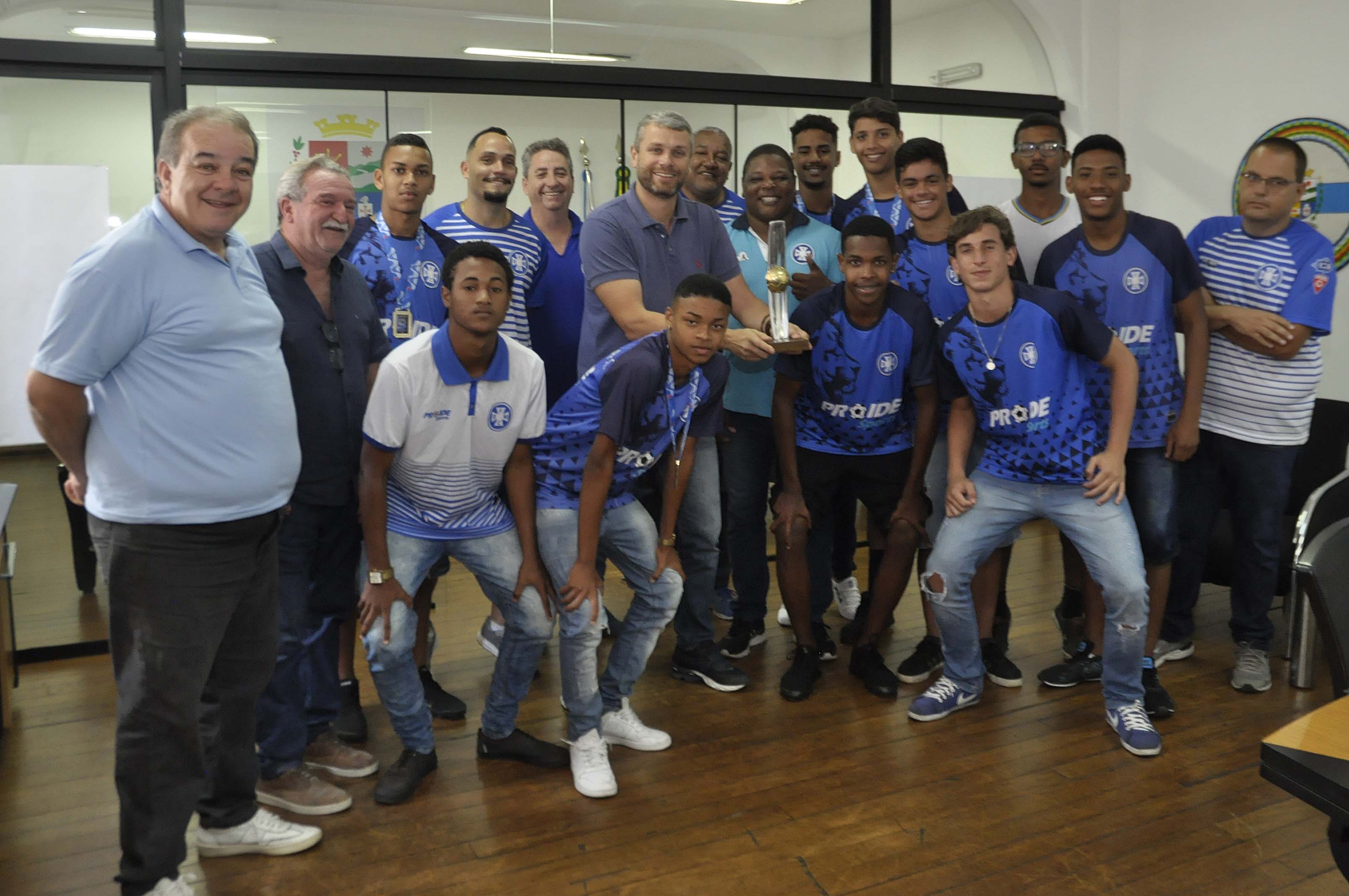 Os atletas da equipe do Barra Mansa Futebol Clube, que no último domingo, conquistou o título da Série B1/B2 do Campeonato Carioca Sub-17 de 2019, foram recebidos pelo prefeito de Barra Mansa, Rodrigo Drable. O Encontro aconteceu no Centro Administrativo Municipal Prefeito Luiz Amaral (Campla) na tarde de ontem. Jogadores e comissão técnica foram parabenizados pelo desempenho na Série B1/B2 do Campeonato Carioca Sub-11. Em 16 jogos disputados, a equipe barra-mansense conquistou oito vitórias, seis empates e sofreu apenas duas derrotas.