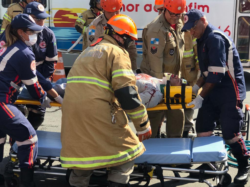 A programação do Maio Amarelo, mês dedicado a chamar a atenção da população para o alto índice de mortes e feridos no trânsito, foi encerrada em Angra dos Reis na manhã de quinta-feira, dia 30, com uma atividade que aliou conscientização e prevenção. Um grande número de pessoas se reuniu para acompanhar um simulado de acidente de trânsito, envolvendo dois veículos e atendimento de múltiplas vítimas, na Avenida Júlio Maria, uma das vias mais movimentadas do Centro da cidade. Para trazer mais realidade ao projeto, além das equipes de socorro, a ação contou com cenário e maquiagens para os participantes. Algumas pessoas, no entanto, chegaram mesmo a acreditar que era um acidente e, durante o ocorrido, encaminharam imagens para as redes sociais lamentando o fato. Contudo, o objetivo foi conscientizar a população sobre a importância do trabalho realizado pelos socorristas, além de destacar a necessidade de cuidados que devem ser tomados pelos motoristas e motociclistas para evitar acidentes.