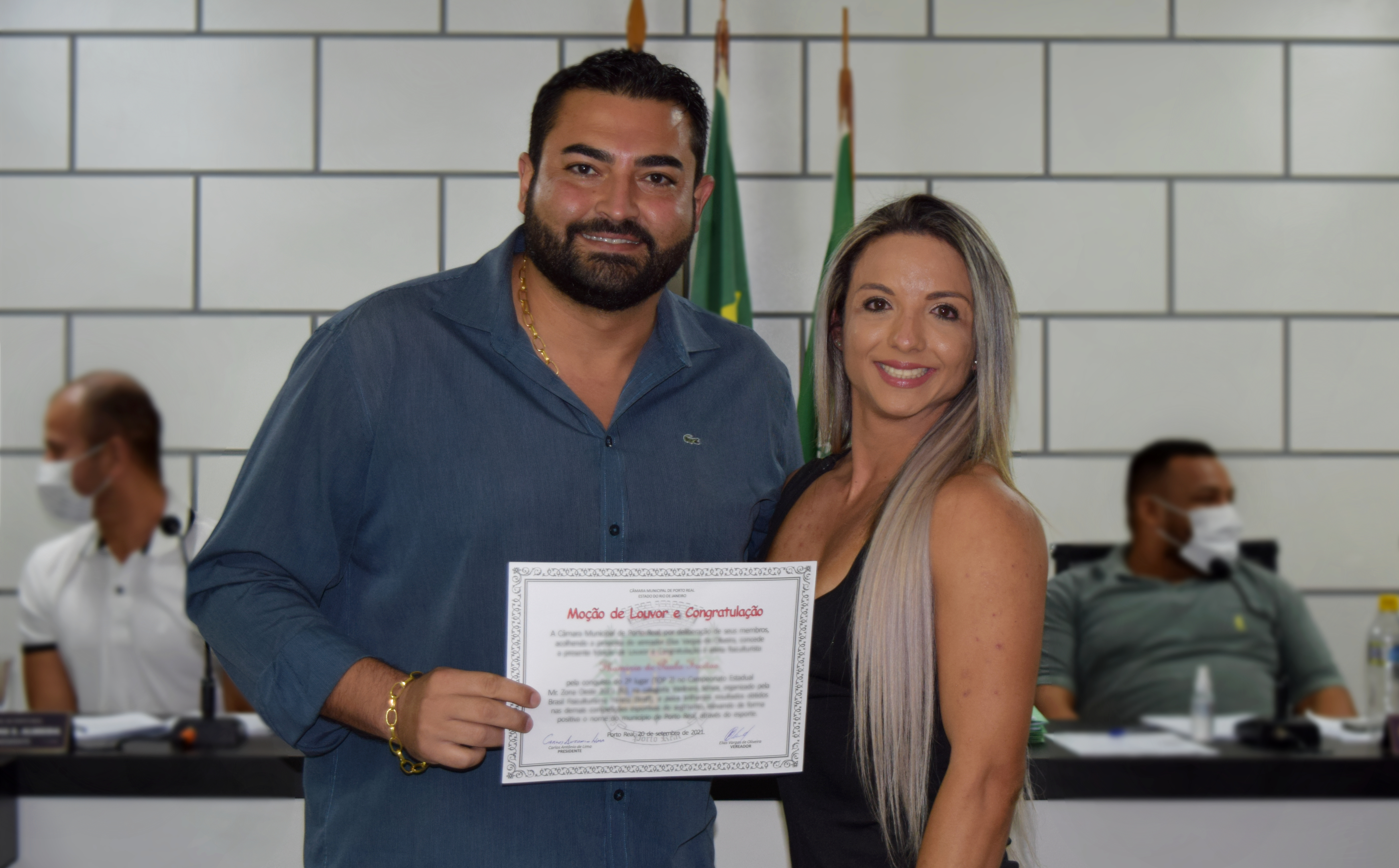 A fisiculturista Thamiris de Paula Freitas teve seus méritos reconhecidos publicamente pela Câmara de Vereadores de Porto Real, na segunda-feira, dia 20. A jovem atleta foi condecorada no plenário com uma Moção de Louvor e Congratulação. A entrega do título feita pelo vereador Elias Vargas (PRTB), autor da propositura. A homenageada, que tem 27 anos, é moradora de Porto Real e recentemente, conquistou o 2º lugar (TOP 2) na categoria Wellness Sênior até 1,58m, no Campeonato Estadual Mr. Zona Oeste (RJ), organizado pela Brasil Fisiculturismo & Fitness (BRAFF).