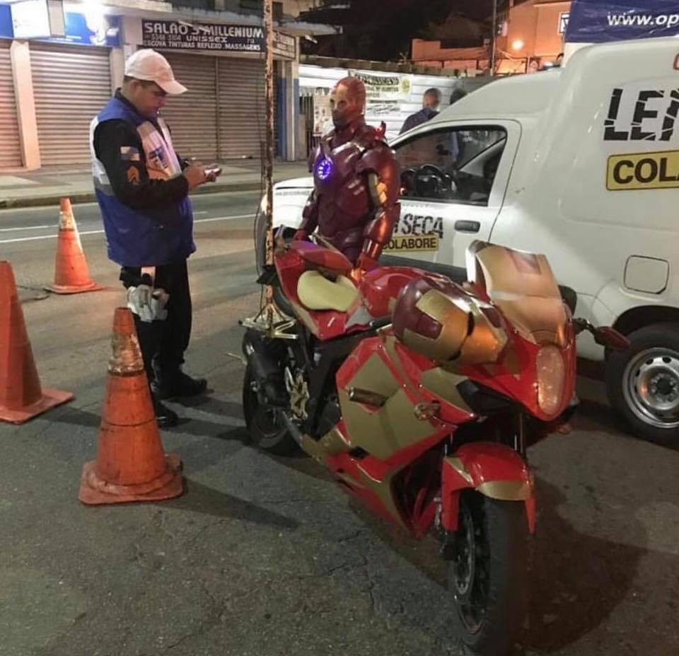 Homem de ferro parado na Lei Seca