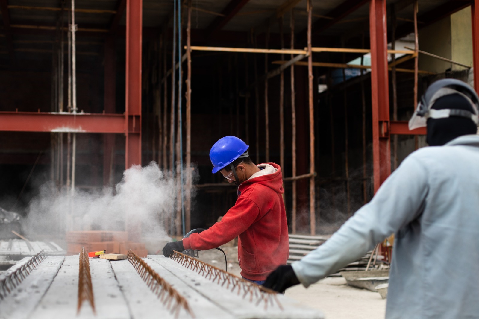 O aço utilizado está sendo fornecido pela mesma empresa responsável pela ampliação do Hospital São João Batista (HSJB), e as próximas vigas e colunas devem chegar e ser instaladas nos próximos dias. Em paralelo, a empresa já iniciou o assentamento das lajes, tendo concluído dois pavimentos e com previsão de que a terceira seja instalada entre 15 e 20 dias. Com isso, já foi possível iniciar a parte de alvenaria no primeiro e segundo andares, com o assentamento de tijolos. Os muros de contenção já estão prontos.