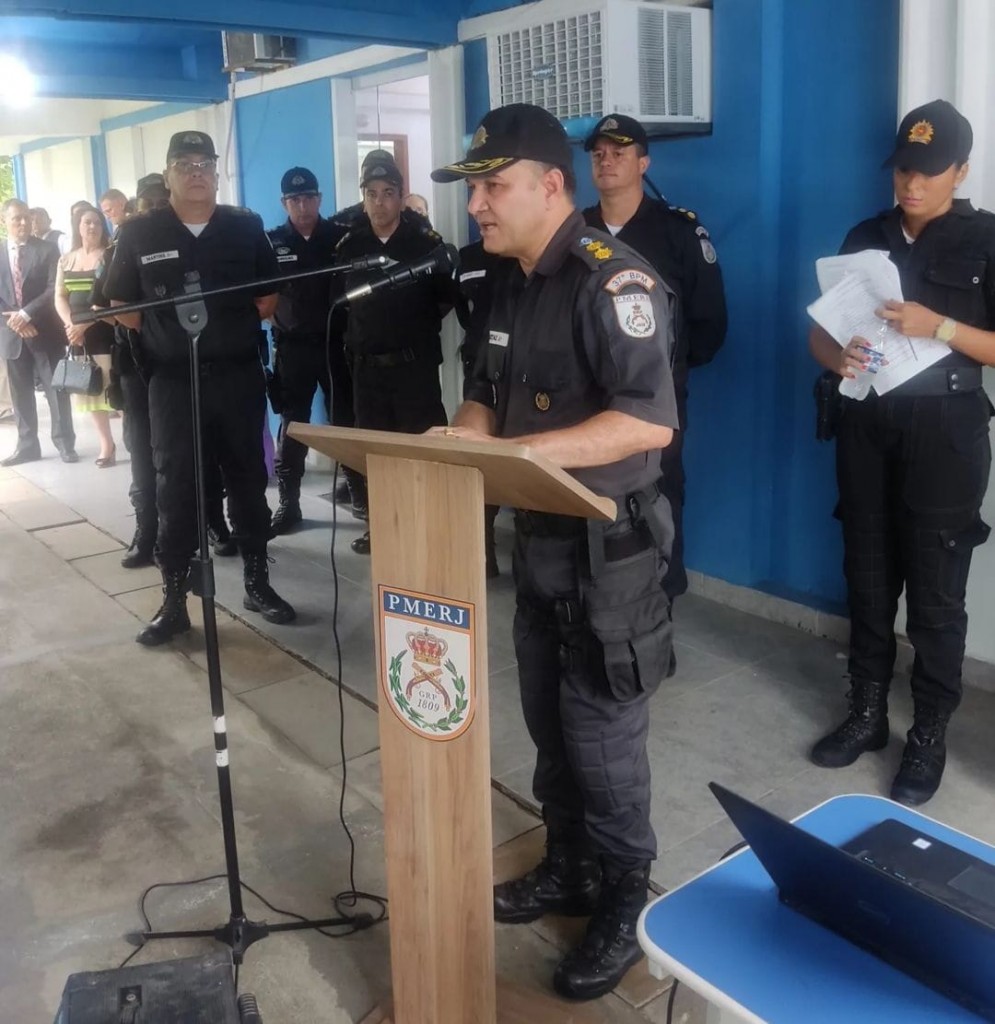 Já o novo comandante, Marcelo Brasil é oriundo do 5º BPM (Saúde). Este é o terceiro Batalhão que o novo comandante assume. Ele também já comandou 36º BPM (Santo Antônio de Pádua). Também tomou posse o subcomandante, major Abelheiros.
