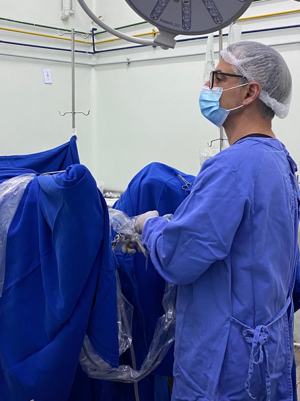 Ainda no sábado, o Dr. Anderson realizou cinco cirurgias de urologia. Três pacientes, com idades entre 60 a 76 anos, foram submetidos a prostatectomia a céu aberto, indicada para retirada total ou parcial da próstata. Realizada por incisão no abdômen, permite acesso direto ao órgão para tratar câncer ou hiperplasia. O procedimento oferece ampla visualização ao cirurgião, sendo indicado quando alternativas minimamente invasivas não são recomendadas.