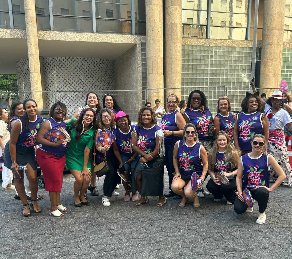 A Comissão OAB Mulher de Barra Mansa participou, nesta quinta-feira, 12, de mais uma edição do tradicional ato pré-carnavalesco promovido pelo Tribunal Regional do Trabalho do Rio de Janeiro (TRT-RJ). A mobilização, realizada em frente ao prédio-sede da Corte, no Centro da capital, já está consolidada como um dos destaques do calendário institucional da Justiça do Trabalho.