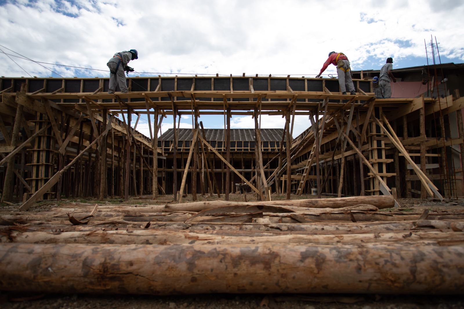 Após a fase de fundações, empresa responsável pelo serviço trabalha no levantamento de pilares, vigas e cobertura da ampliação do prédio