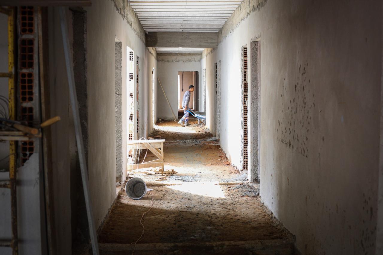 Atualmente, os trabalhos estão concentrados na execução das instalações hidráulicas, de esgoto e na infraestrutura elétrica. Após a conclusão dessas etapas, será realizada a concretagem do piso, dando sequência ao andamento da obra.