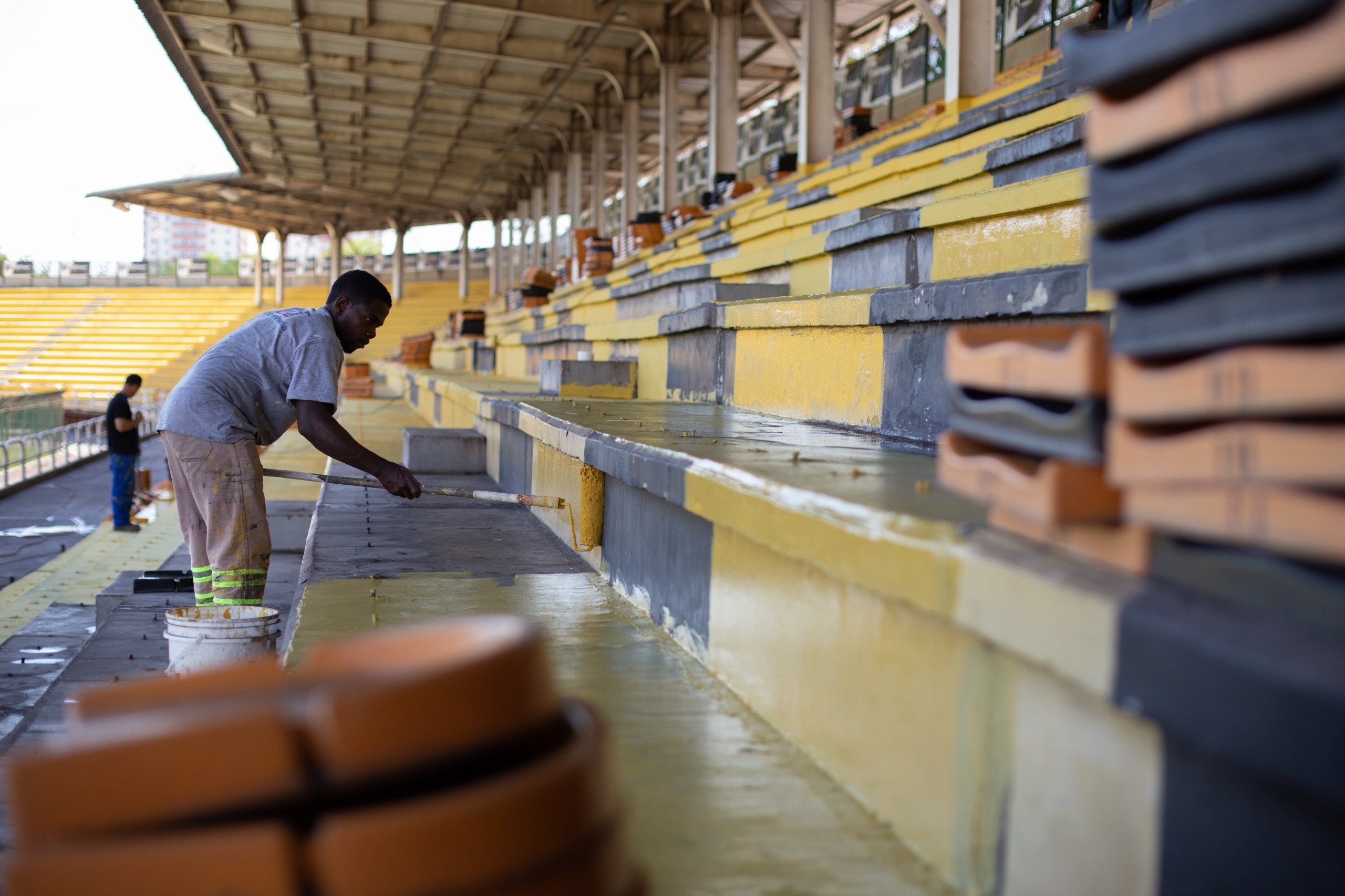 No momento, a empresa responsável pela obra retirou parte dos assentos da arquibancada coberta do lado oposto, a fim de realizar a nova pintura e posterior recolocação dos assentos recuperados. Mais para frente, as arquibancadas descobertas também serão revitalizadas, incluindo pintura, recuperação dos assentos e impermeabilização.