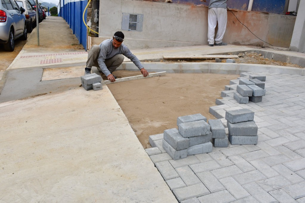 assentamento dos pisos intertravados para realização do acesso da ambulância”, informou o secretário. Ele ainda disse que as equipes também realizam a finalização dos arremates em emboço, o emassamento e preparo para pintura interna da unidade.
