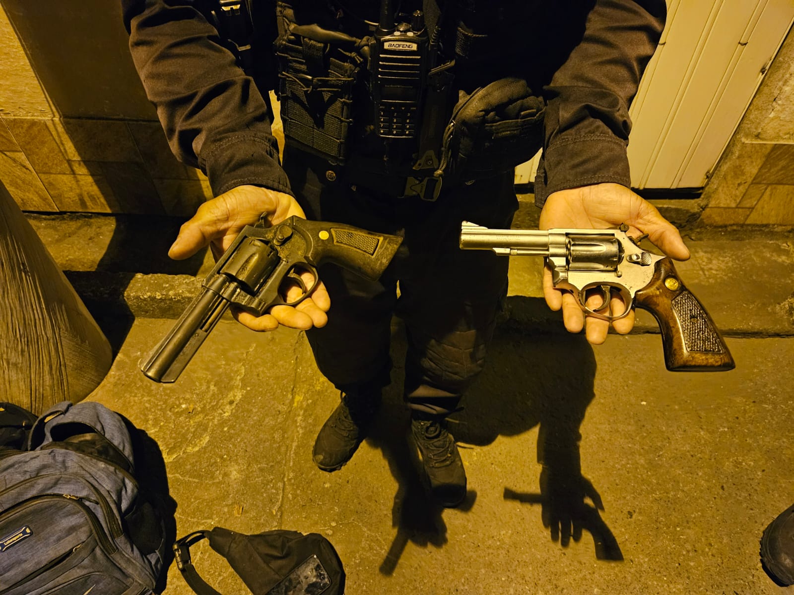 Durante o cerco tático, os suspeitos tentaram fugir, mas foram alcançados pelos policiais. Entre os detidos, estavam dois menores, de 16 e 17 anos. Também foram apreendidos um revólver calibre 38, um revólver calibre 32, sete tambores de haxixe, dois tambores e quatro dolas de maconha, quatro pedras de crack, R$ 170 reais em espécie, oito celulares, além de um rádio transmissor com bateria e munições.