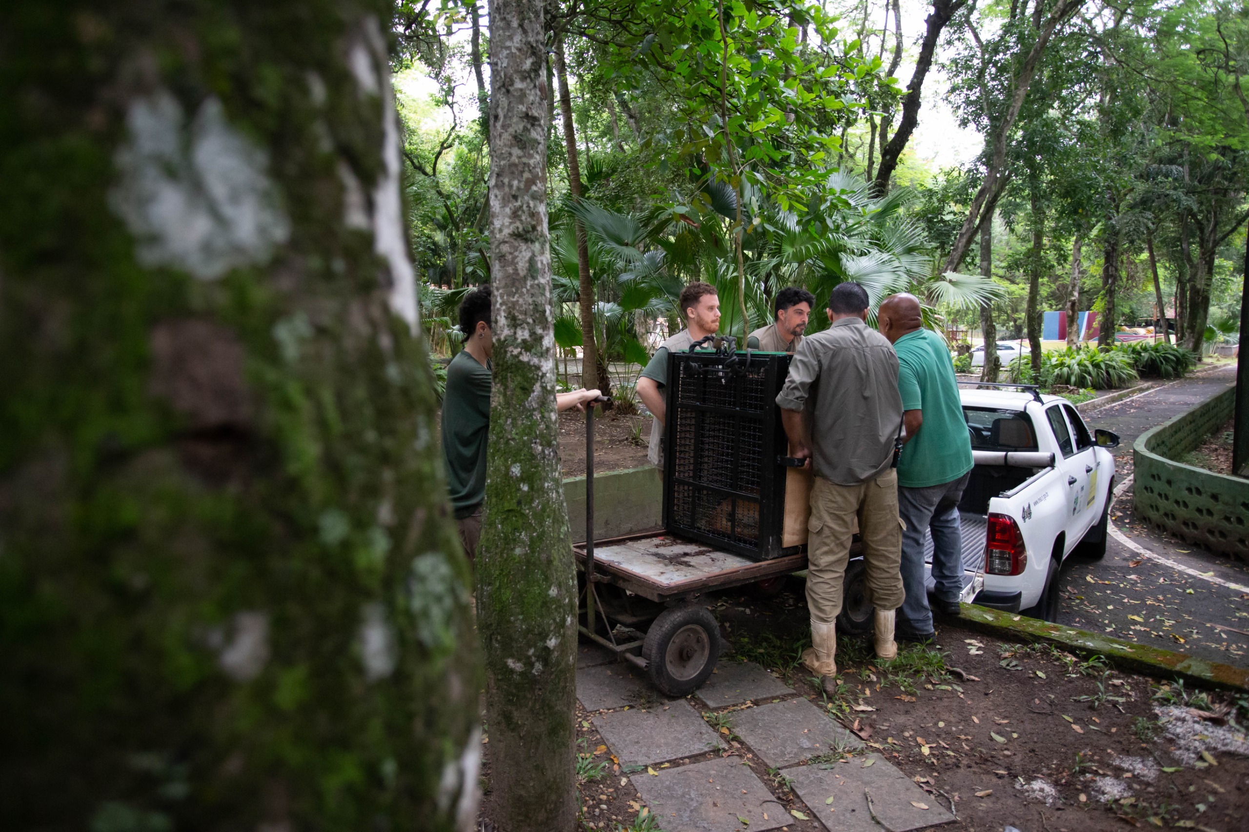 Antes de ser liberado, o animal passou por uma avaliação completa no Zoo-VR. A equipe veterinária realizou exames laboratoriais, ultrassonografia, radiografia e avaliação oftalmológica — esta última necessária porque a onça chegou ao zoo com uma alteração no olho esquerdo.