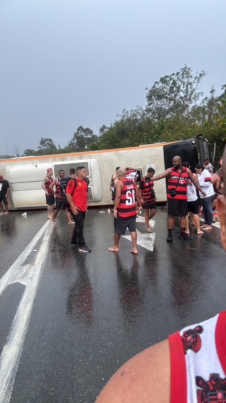 Na tarde desta segunda-feira, dia 27, a Polícia Rodoviária Federal (PRF) registrou o tombamento de um ônibus com torcedores do Flamengo que, segundo informações, teria como destino a Argentina, onde a equipe rubro-negra enfrenta o Racing pela Libertadores. O acidente aconteceu na altura do bairro Vila Ursulino no sentido São Paulo.